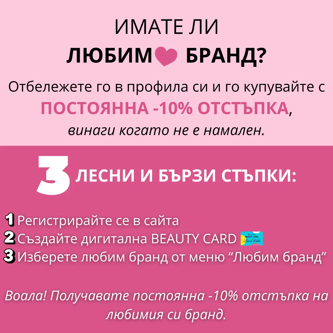 Притежателите на Beauty Card получават възможността да изберат един „Любим бранд“ от всички предлагани марки от магазини Златна рибка, за която да ползват 10% постоянна отстъпка при покупка, при условие че продуктите от тази марка не са вече намалени.