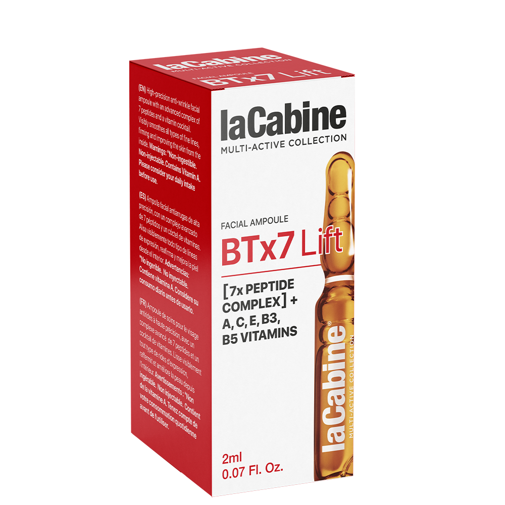 Ампула за лице BTx7Lift е локална, ефективна и неинвазивна алтернатива на продуктите с ботулинов токсин. Вдъхновена от естетичните процедури против бръчки и мезотерапията.