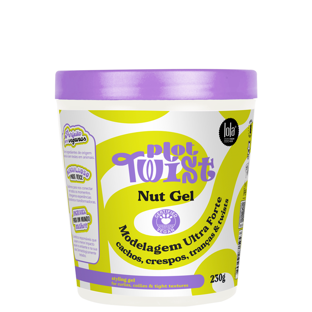 Гел за стилизиране на къдрици Plot Twist Nut Gel осигурява ултра силна фиксация, дефиниция и изразителност на къдриците, без да утежнява. Придава естествен матов завършек и контролира фриз ефекта дори при висока влажност. Запазва формата и обема на прическата през целия ден. Осигурява термозащита и UV защита, предпазвайки цвета и структурата на косъма. Запазва къдриците гъвкави, меки и естествени, без да оставя следи или усещане за твърдост.
