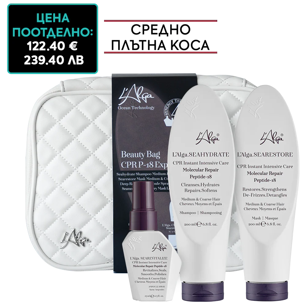- Aмпула спрей за незабавно интензивно молекулярно възстановяване на средно плътна коса L’Alga SEAREVITALIZE CPR Instant Intensive Care Medium and Coarse Hair Ampoule Spray 15 мл