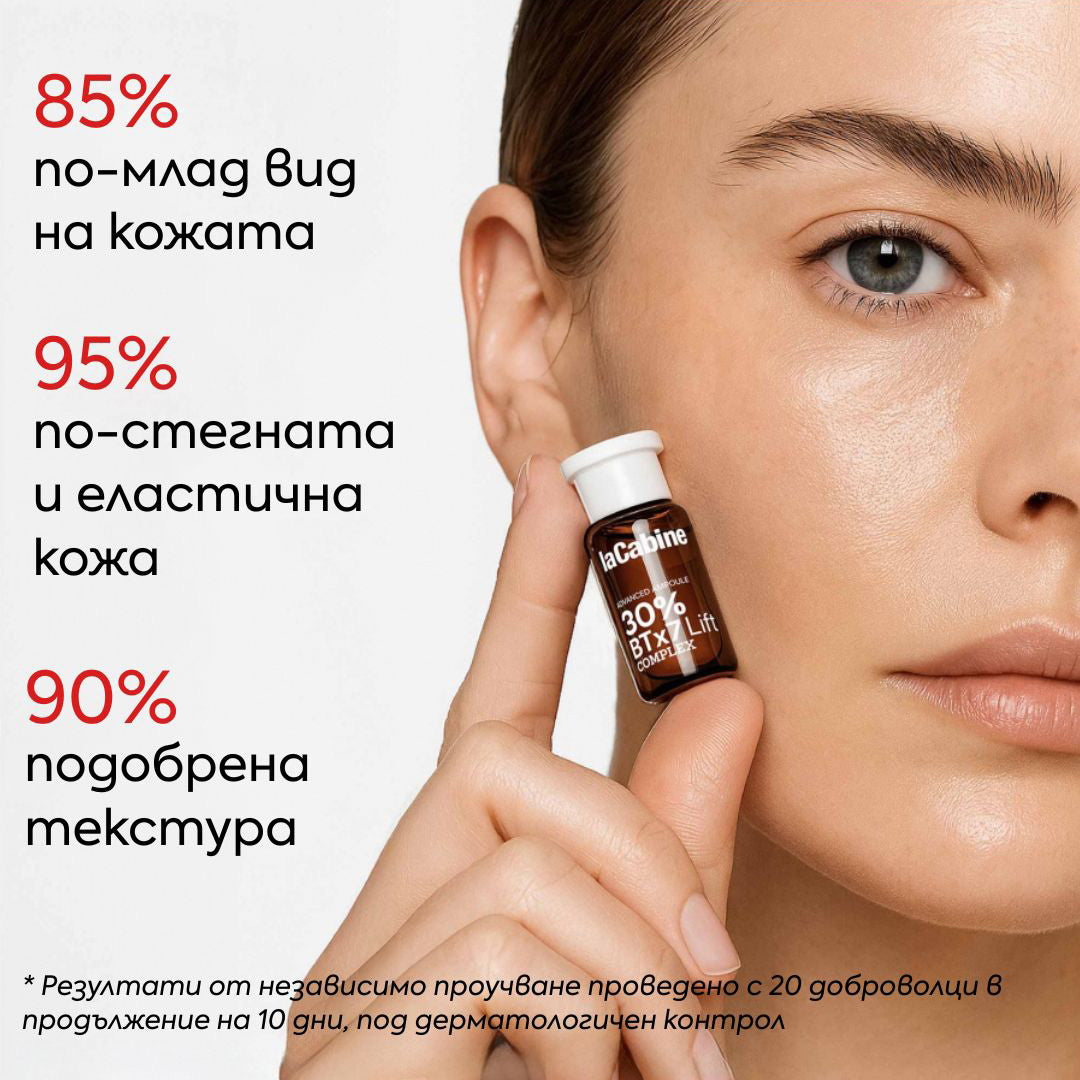 Ампула за лице 30% BTx7 Lift Advanced е с лека текстура. Създава интензивно усещане за микростимулация при контакт с кожата (усещане за убождане), типично за биомикронидлинг. Има иновативна опаковка с капаче за лесно отваряне. |