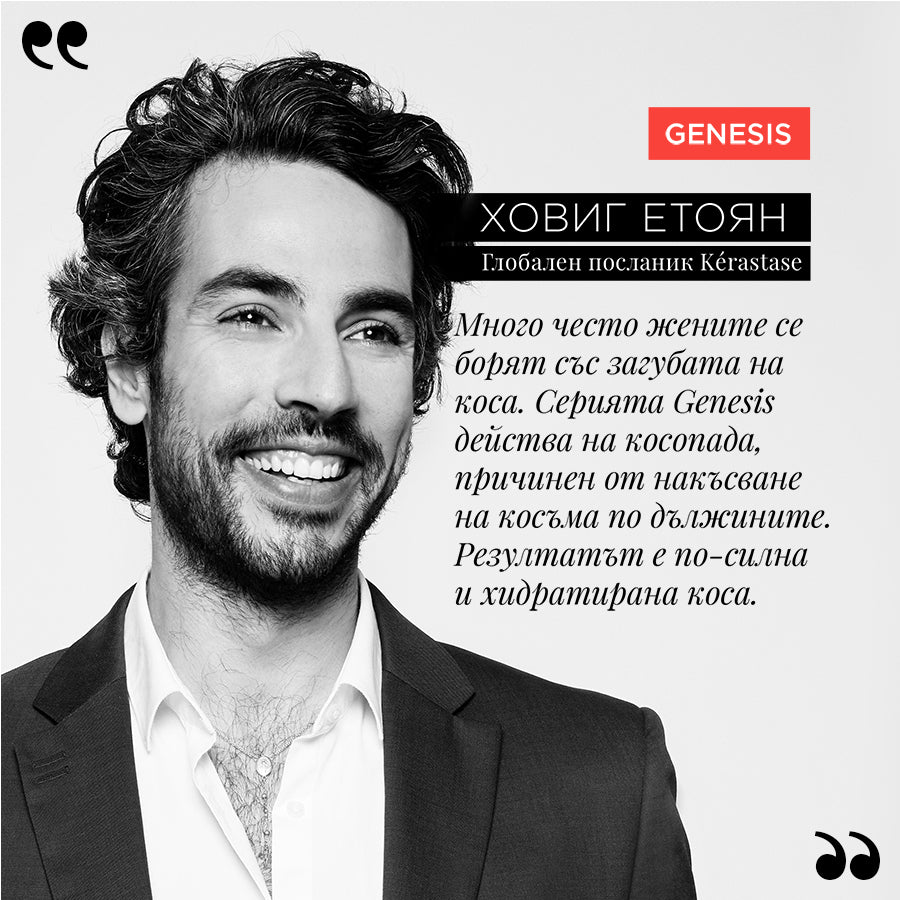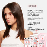 Шампоанът Genesis е подходящ за коса склонна към косопад. Нежно почиства и подсилва косата, за да намали риска от косопад, причинен както от накъсване по дължините, така и в следствие на отслабване от корените. Деликатната формула е подходяща за фина или склонна към омазняване коса. Шампоанът премахва себума и замърсяванията, а нежното му почистващо действие омекотява и хидратира всеки косъм от корена до връхчетата, придавайки чувство за лека коса. Формулата съдържа мощна комбинация от клетки на еделвайс и корен от джинджифил, която укрепва косата за повече сила устойчивост, като намалява риска от косопад поради накъсване. Подхранва косата и улеснява разресването, без да утежнява.