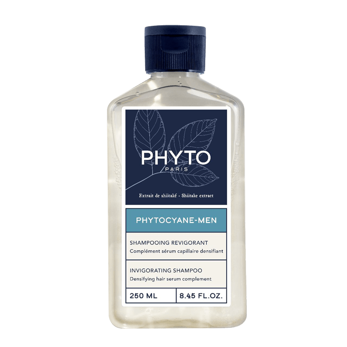 Шампоан против косопад за мъже PHYTOCYANE Shampoo for Men за деликатно почистване и стимулиране на скалпа. Подходящ за всеки тип коса. Има висока ефективност в борбата срещу загубата на коса, обем, плътност и блясък на косата. Оказва интензивно ревитализиращо действие върху скалпа и фоликулите. Възстановява жизнеността на косата. Стимулира растежа на нова коса и предпазва от повторна поява на косопад.
