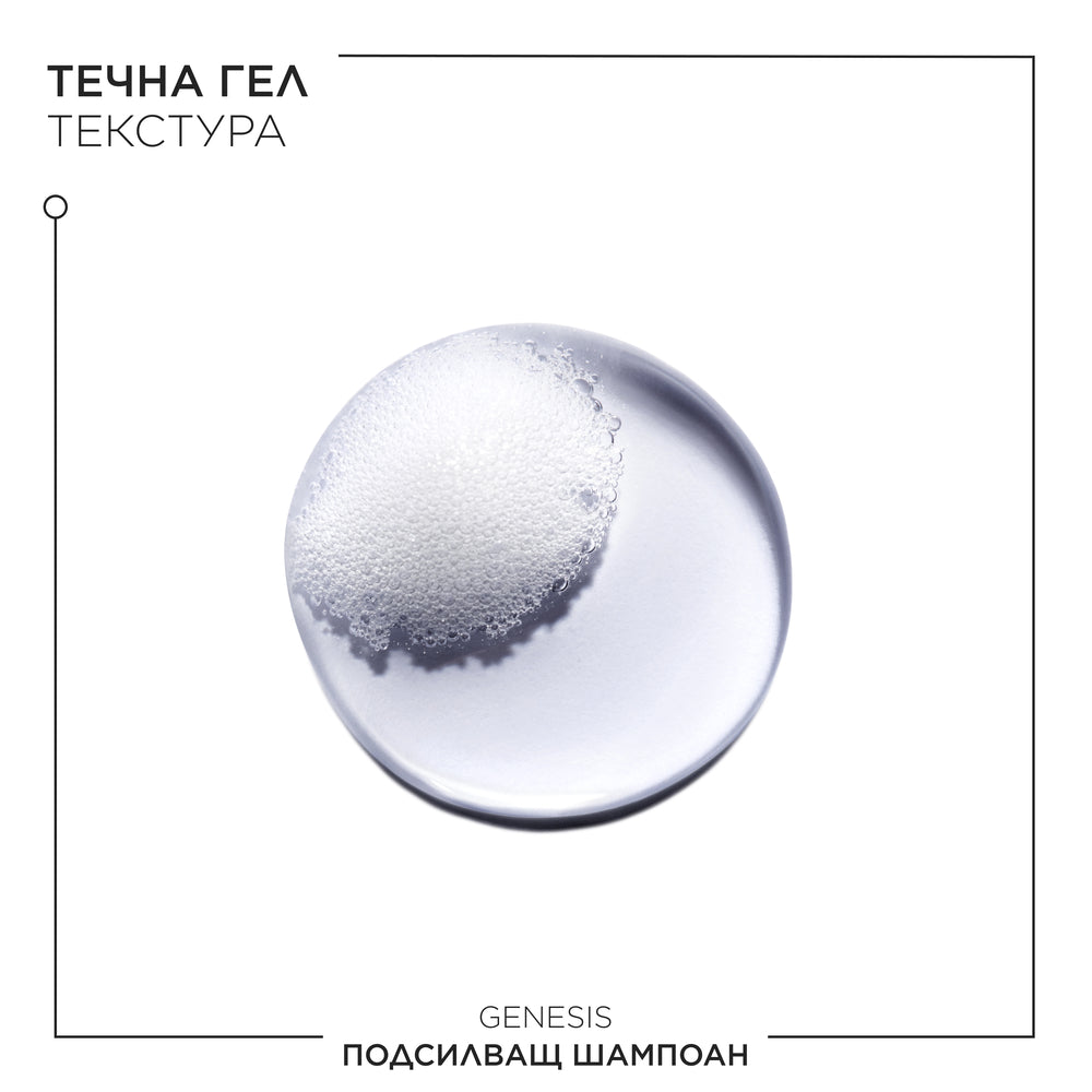 Шампоанът Genesis е подходящ за коса склонна към косопад. Нежно почиства и подсилва косата, за да намали риска от косопад, причинен както от накъсване по дължините, така и в следствие на отслабване от корените. Деликатната формула е подходяща за фина или склонна към омазняване коса. Шампоанът премахва себума и замърсяванията, а нежното му почистващо действие омекотява и хидратира всеки косъм от корена до връхчетата, придавайки чувство за лека коса. Формулата съдържа мощна комбинация от клетки на еделвайс и корен от джинджифил, която укрепва косата за повече сила устойчивост, като намалява риска от косопад поради накъсване. Подхранва косата и улеснява разресването, без да утежнява.