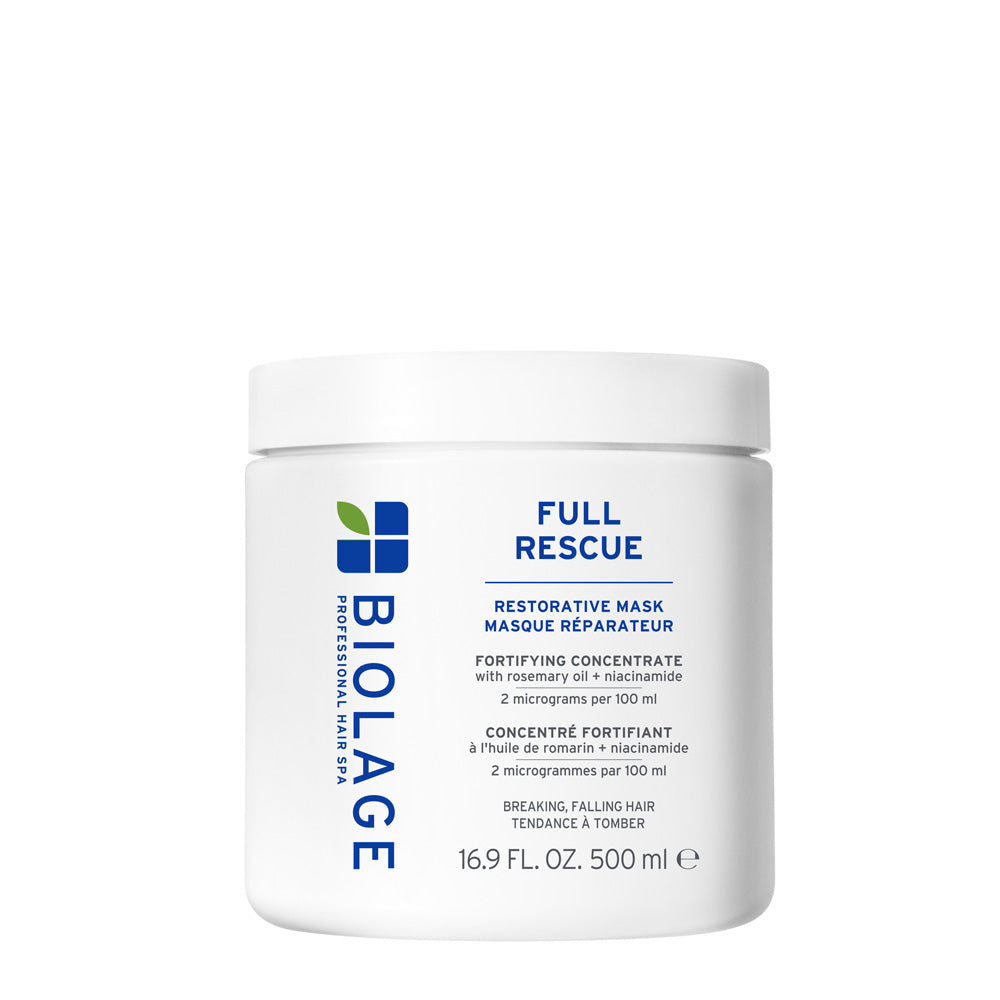 Възстановяваща маска за фина и изтъняваща коса Full Rescue е с формула, обогатена с масло от розмарин и ниацинамид, която помага за възстановяването на здравината и изглаждането на косата за по-плътно и меко усещане. Маската е с веган формула* и деликатно хидратира косата, като ѝ придава плътност, без да я утежнява.