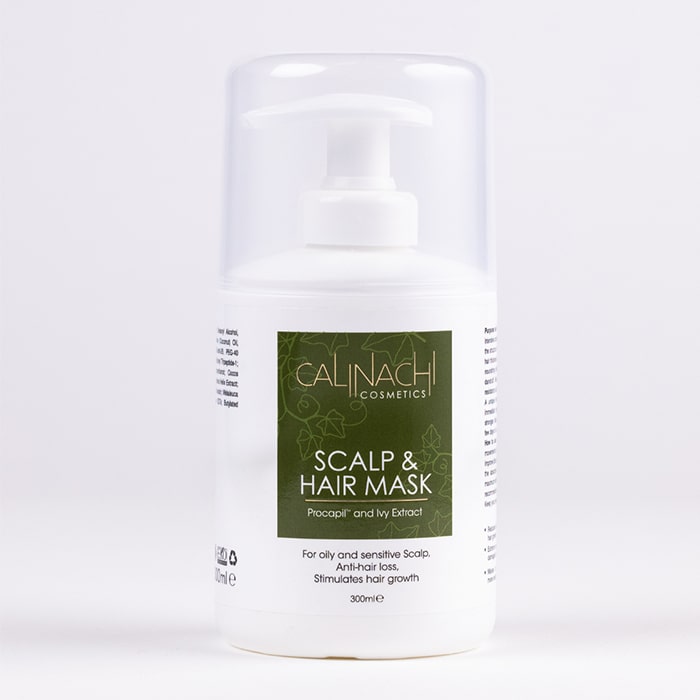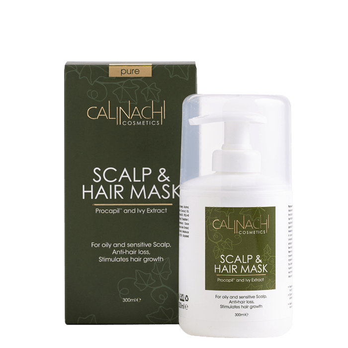 Възстановяваща маска за скалп и нормална към мазна коса Calinachi Procapil and Ivy Extract Scalp & Hair Mask съдържа мощен интензивен комплекс за възстановяване на увредена, безжизнена и чуплива коса. Подходяща е за чувствителен и бързо омазняващ се скалп. Възстановява структурата на косъма, подхранва корените и стимулира растежа. Придава плътност и блясък на косата, като я прави много по-здрава и блестяща. Има дълбоко подхранващо действие. Улеснява разресването, без да натоварва косата. Увеличава устойчивостта и естествената защита. Уникална формула с високоефективни активни съставки, която има регенериращ ефект. Косата ви е по-силна, жизнена, с по-гладка повърхност и повече обем само след първите няколко дни на употреба.