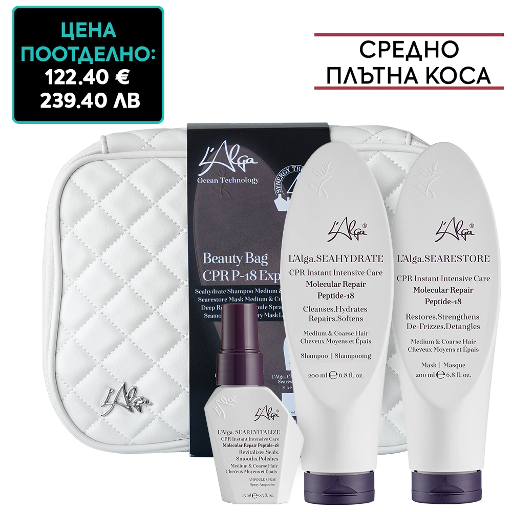 - Aмпула спрей за незабавно интензивно молекулярно възстановяване на средно плътна коса L’Alga SEAREVITALIZE CPR Instant Intensive Care Medium and Coarse Hair Ampoule Spray 15 мл
