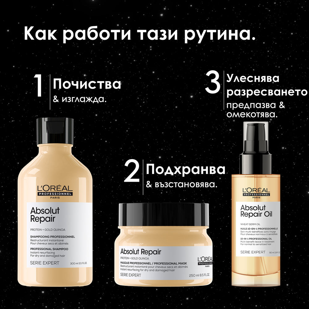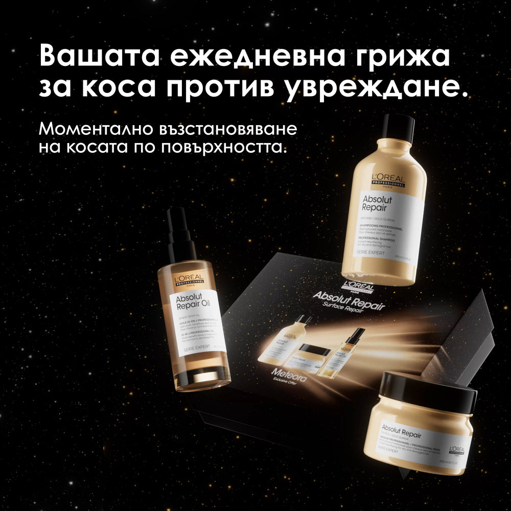 Лимитирана подаръчна кутия Absolut Repair с продукти за възстановяване на увредената коса.