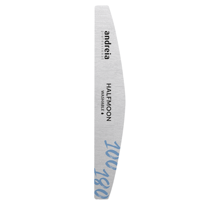 Полуобла измиваема пила 100/180 направена от японска ергономична хартия, която придава допълнително удобство при употреба. Притежава висока устойчивост. Идеална за обработка и оформяне на страничата повърхност на нокътната плочка. С обли ъгли позволяващи работа в непосредствена близост до кутикулите.