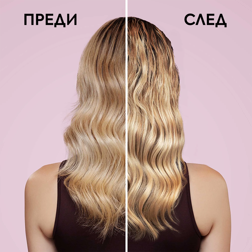 Върху влажна коса: Нанесете и разрешете косата с широк гребен за постигане на екстра блясък.