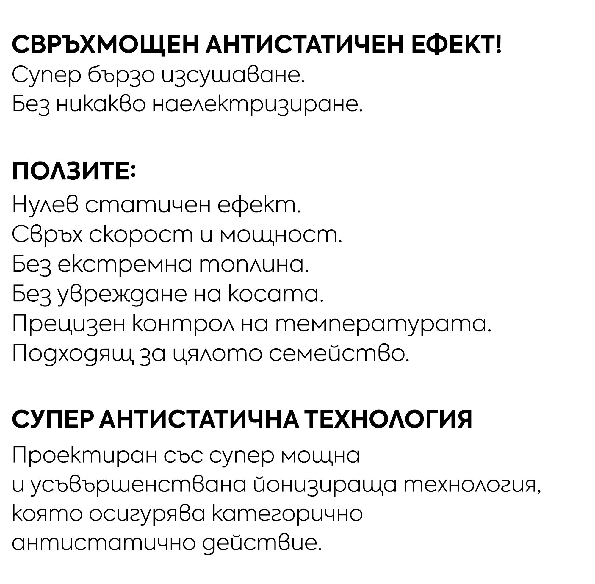 Сешоарът е лек и по-тих. След употреба косата е гладка. Изсушава косата много бързо.