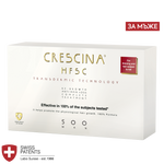 Цялостната терапия за възстановяване растежа на косата и против косопад за мъже Crescina Transdermic HFSC Complete Treatment 500 Man е предназначена за употреба при междинен стадий на оредяване на косата.