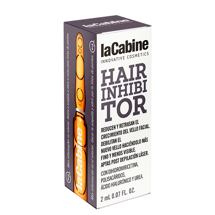 Ампула Hair Inhibitor е висококонцентрирана ампула за борба с нежеланото окосмяване по лицето. Отслабва косъмчетата по лицето, като ги прави по-фини и по-малко видими. Забавя растежа на косъма, като така намалява честотата и броя на процедурите за епилиране.