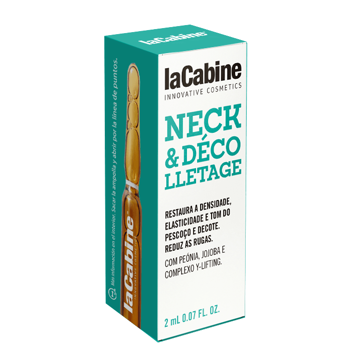 Neck & Decolletage е висококонцентрирана ампула, специално създадена за коригиране на признаците на стареене в зоната на шията и деколтето. Възстановява плътността, еластичността и тонуса на кожата, като същевременно намалява бръчките. Дефинира контурите в Y-зоната (брадичка, долна челюст, шия и деколте) и минимизира ефекта на двойна брадичка.
