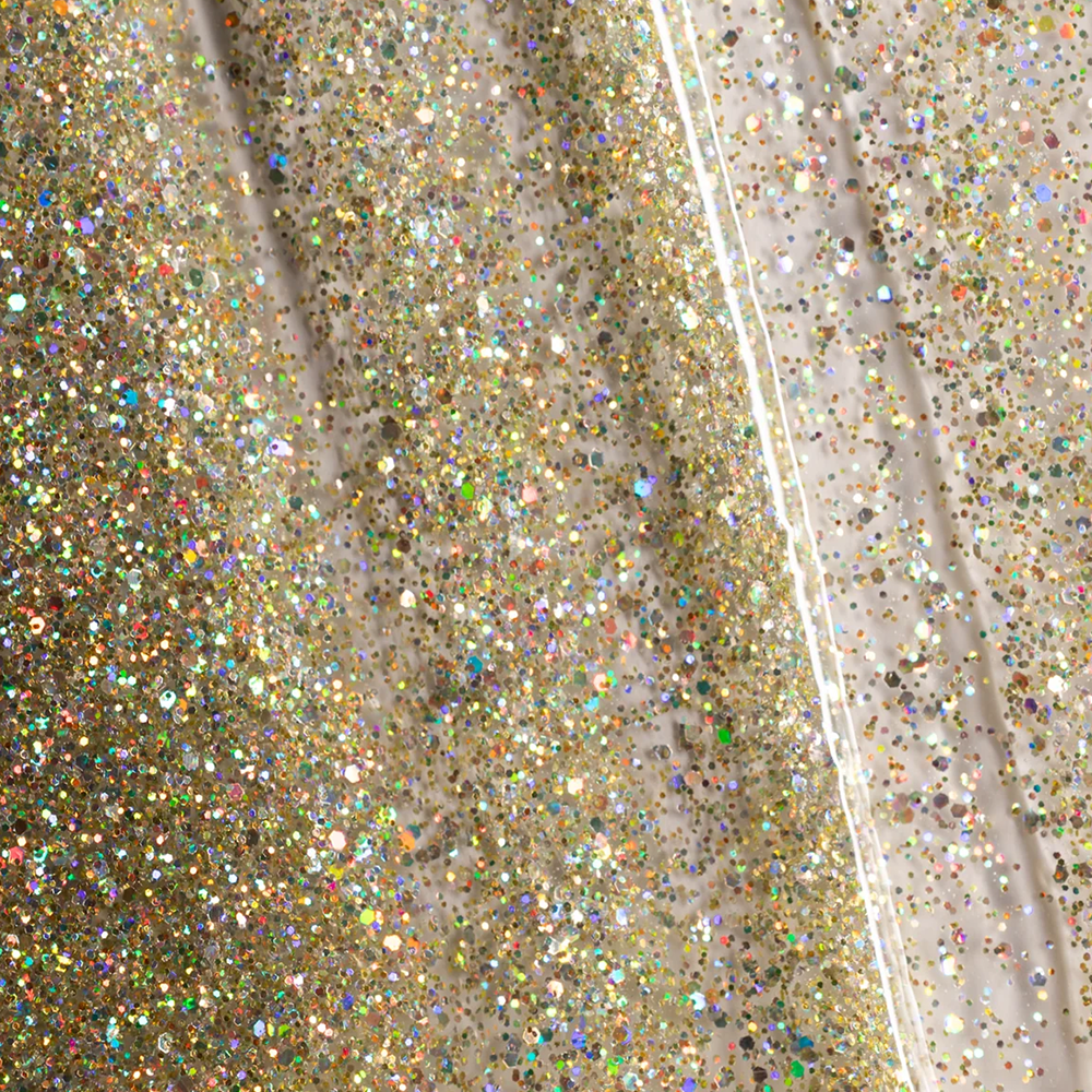 Холографският златен брокат отразява блясъка и разкошът на празничните светлини директно на вашите нокти. Вълшебство под формата на цвят.