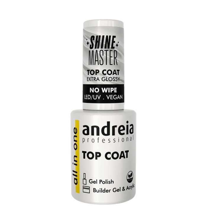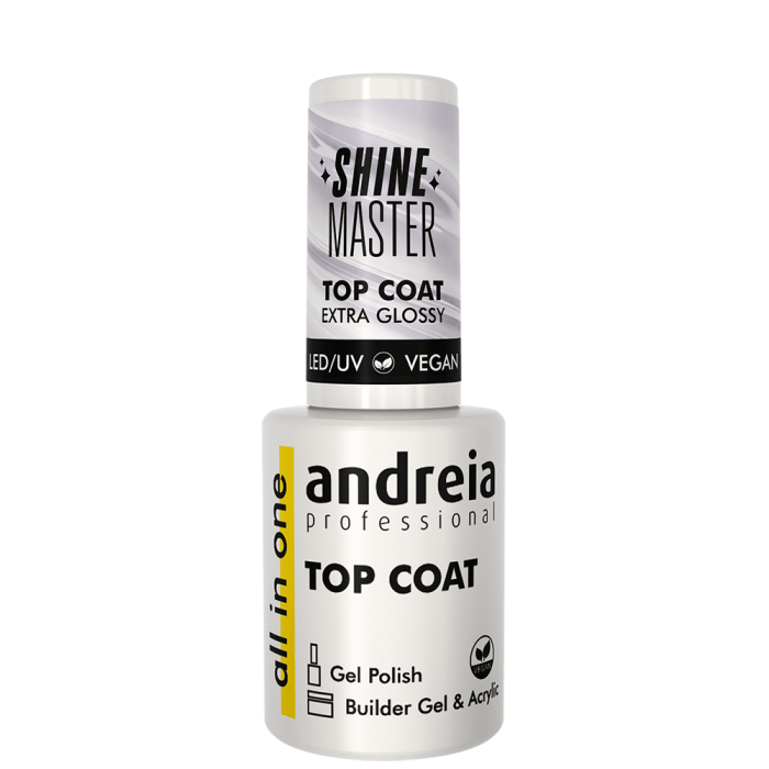Shine Master Top Coat е топ лак с ултра бляскав завършек и лесна за нанасяне, самоизравняваща се текстура. Формулата му осигурява изключителна издръжливост, действайки като защитен филм за маникюра и декорацията.