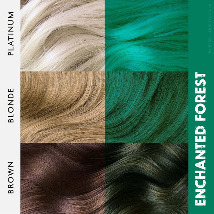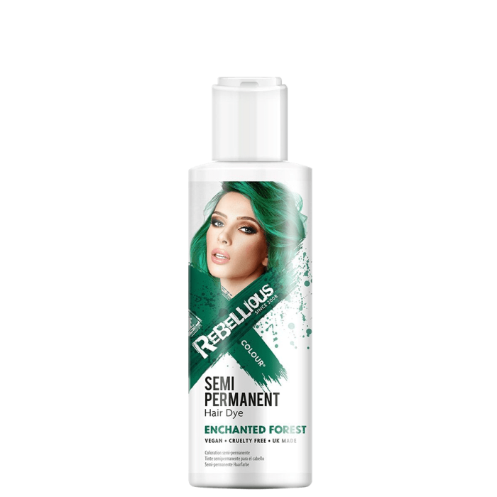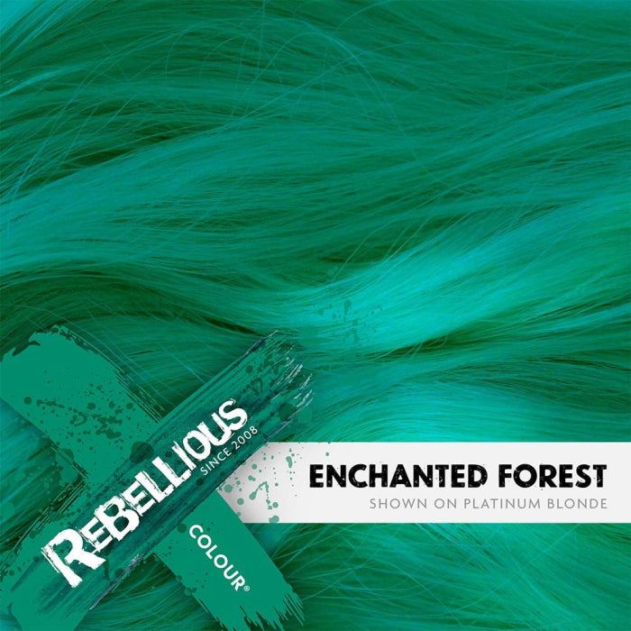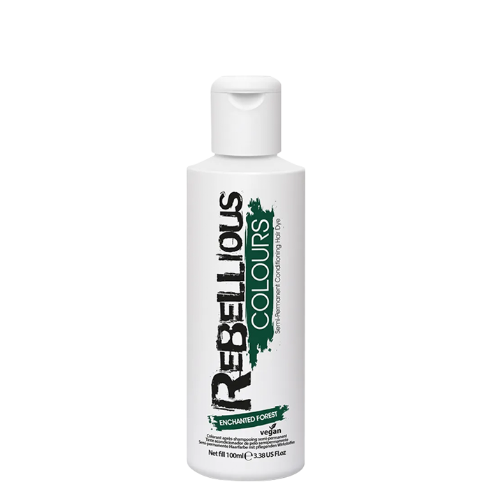 Боята Rebellious Colour Semi-Permanent Hair Dye Enchanted Forest придава ярък и наситен зелен цвят. Осигурява интензивна грижа по време на боядисването със своята хидратираща формула. Идеална е за постигане на екстравагантни визии с ярки цветове. Може да се използва върху цялата коса или за създаването на цветни кичури. Формулата без амоняк предпазва максимално косата, за да се избегне нарушаването на структурата й. Издържа 2 до 10 измивания. Това варира в зависимост от цвета, типа и текстурата на косата.