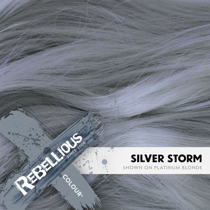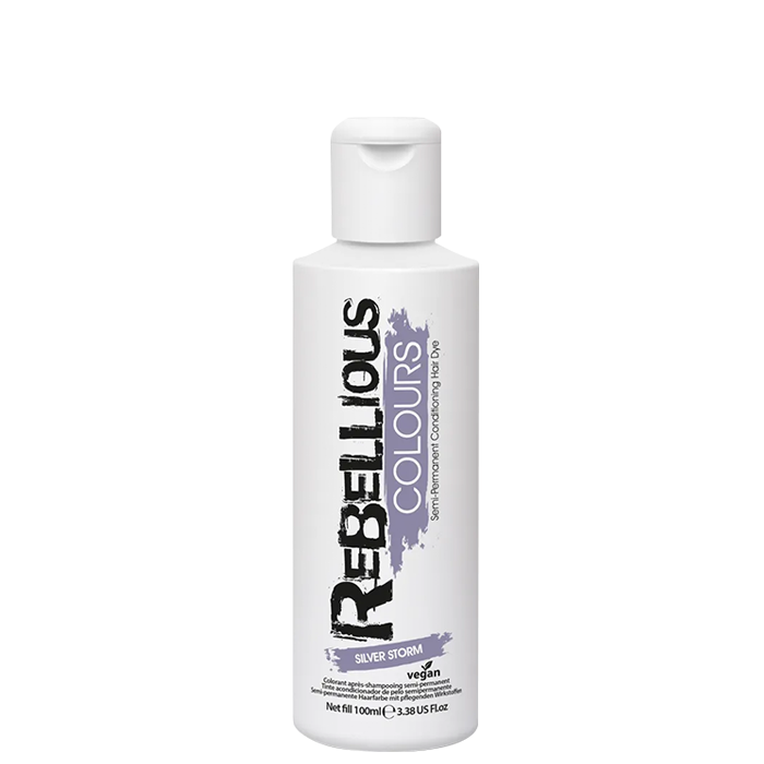 Боята Rebellious Colour Semi-Permanent Hair Dye Silver Storm придава ярък и наситен сребрист цвят. Осигурява интензивна грижа по време на боядисването със своята хидратираща формула. Идеална е за постигане на екстравагантни визии с ярки цветове. Може да се използва върху цялата коса или за създаването на цветни кичури. Формулата без амоняк предпазва максимално косата, за да се избегне нарушаването на структурата й. Издържа 2 до 10 измивания. Това варира в зависимост от цвета, типа и текстурата на косата.
