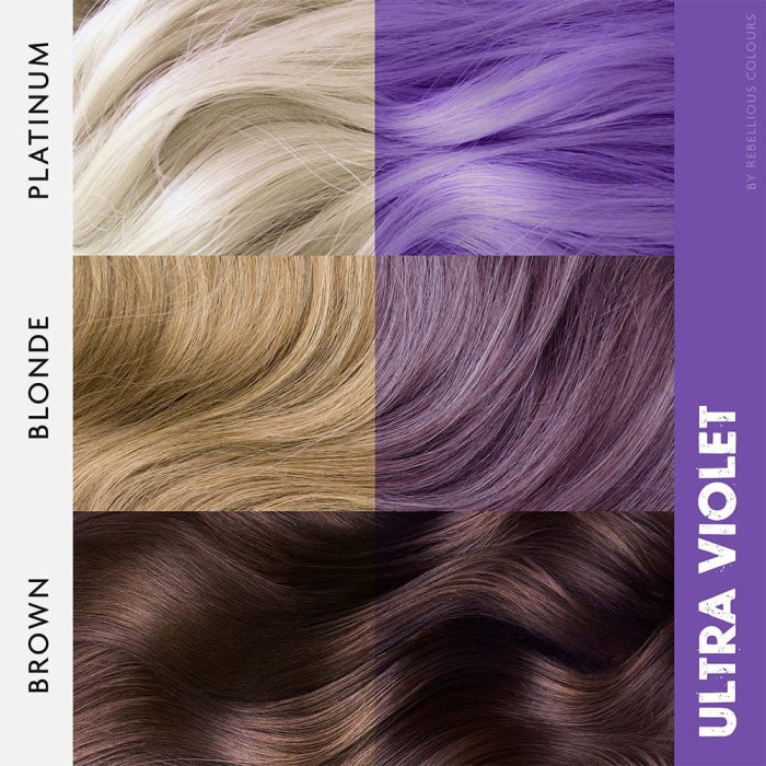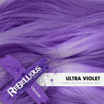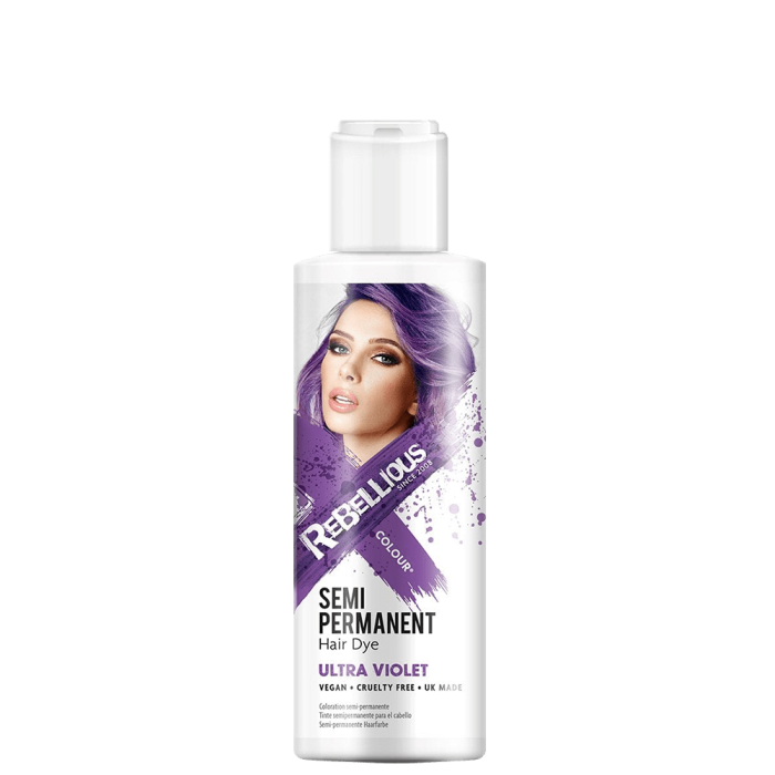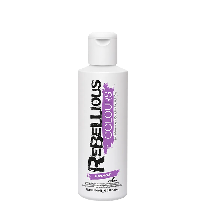 Боята Rebellious Colour Semi-Permanent Hair Dye Ultra Violet придава ярък и наситен виолетов цвят. Осигурява интензивна грижа по време на боядисването със своята хидратираща формула. Идеална е за постигане на екстравагантни визии с ярки цветове. Може да се използва върху цялата коса или за създаването на цветни кичури. Формулата без амоняк предпазва максимално косата, за да се избегне нарушаването на структурата й. Издържа 2 до 10 измивания. Това варира в зависимост от цвета, типа и текстурата на косата.
