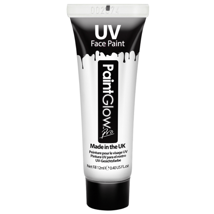 Боята за лице PaintGlow UV Face Paint White свети в бял цвят, при наличието на неонова светлина. Подходяща е за рисуване на лице и тяло, като е необходимо да се избягва зоната около очите и устните. Идеална е за партита, карнавали, Halloween, клубове, дискотеки. Неоновата боя може да се ползва като допълнение към сценичен грим или просто за настроение. Цветът е искрящ и наситен и с него може да създадете една различна и дръзка парти визия. Има гъста и кремообразна текстура. Нанася се и се премахва бързо и лесно. Предлага се в малка и практична опаковка.