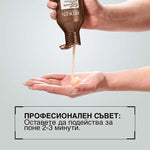 Нанесете върху измита с шампоан коса и изчакайте няколко минути. Изплакнете обилно с вода и продължете към следващите стъпки от рутината.