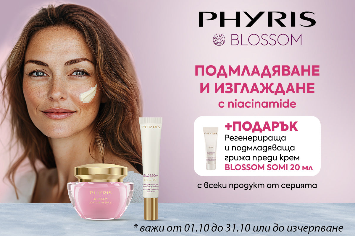 BLOSSOM – новото пътешествие в луксозния свят на PHYRIS. Холистичен подход за цялостно подмладяване на кожата със специални формули с ниацинамид и флорални активни съставки. Бръчките са ефективно изгладени, тенът е равномерен и уеднаквен. Спрете времето с BLOSSOM от PHYRIS!