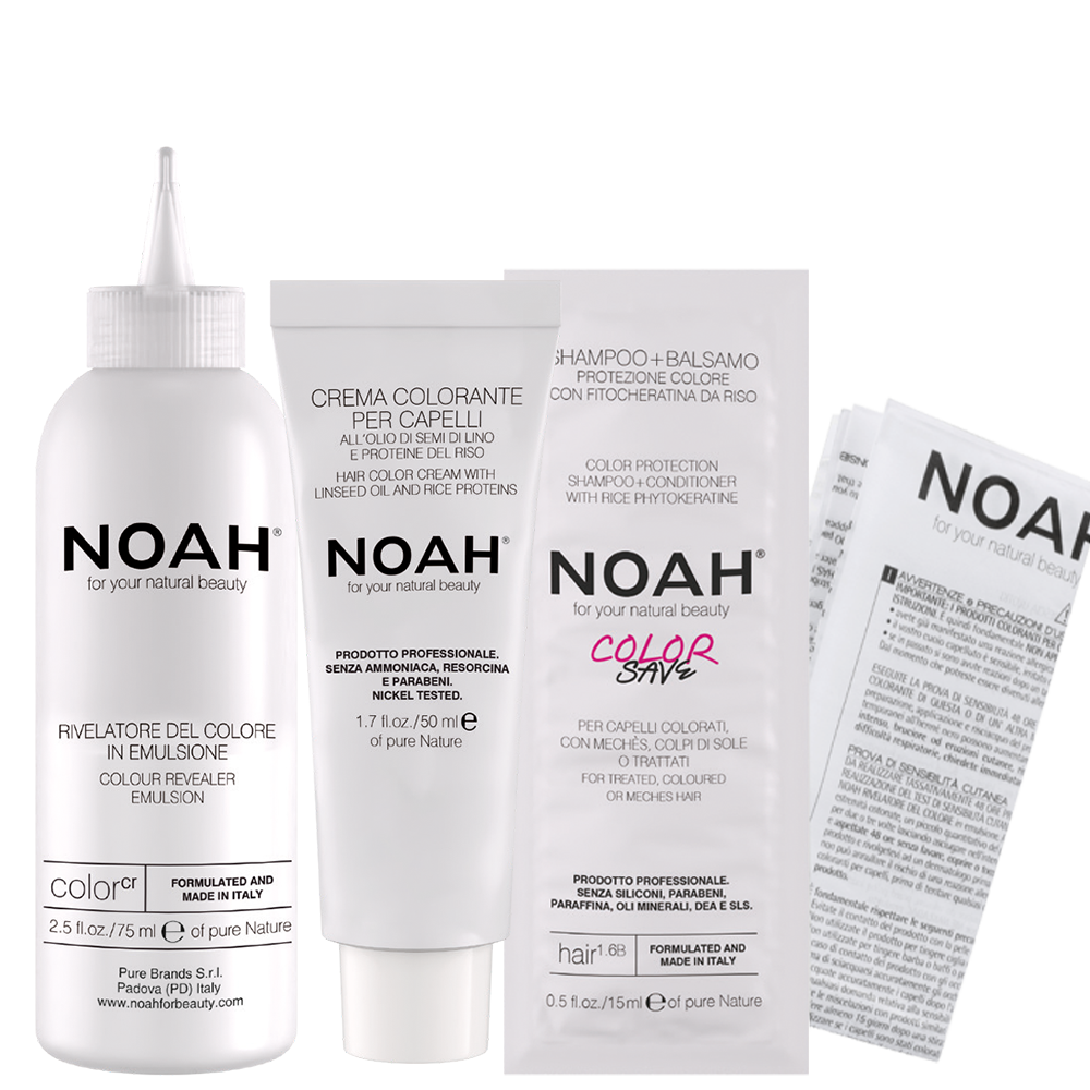Безамонячната трайна боя NOAH осигурява плътно покритие на бели коси, като същевременно е максимално нежна към скалпа. Постига наситени и равномерни цветове с лекота. Формула с оризови протеини и ленено семе придава на косата несравнимо усещане за мекота, плътност и блясък. След боядисване косата се усеща интензивно хидратирана, дълбоко подхранена и жизнена.