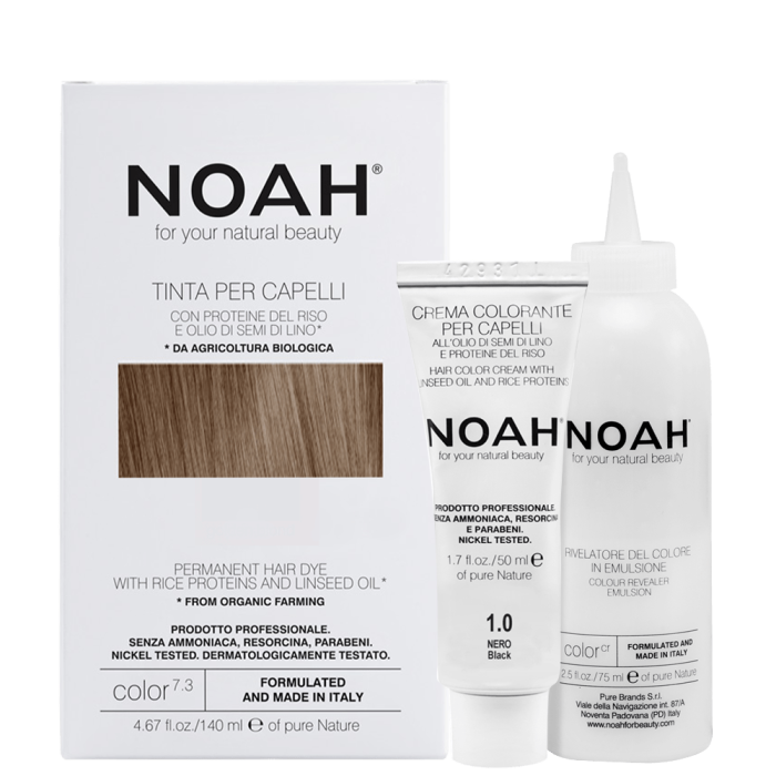 Безамонячната трайна боя NOAH осигурява плътно покритие на бели коси, като същевременно е максимално нежна към скалпа. Постига наситени и равномерни цветове с лекота. Формула с оризови протеини и ленено семе придава на косата несравнимо усещане за мекота, плътност и блясък. След боядисване косата се усеща интензивно хидратирана, дълбоко подхранена и жизнена.