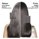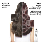 Естествена коса: Започнете нанасянето по дължините и връхчетата на 1.5 см от корена, след това нанесете в корена и засечете време на действие 35 мин.