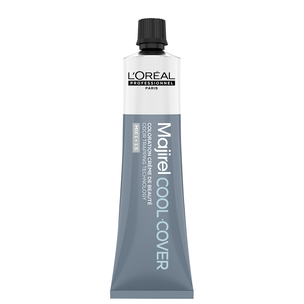 Боя за коса L'Oréal Professionnel Majirel Cool Cover с нова формула. Същите отлични резултати, сега с технология за неутрализиране на аромата на амоняк. 12 нюанса за студени оттенъци и оптимална неутрализация, дори върху тъмни основи. Перфектно, дълбоко и дълготрайно покритие. До 100% покритие на белите коси.