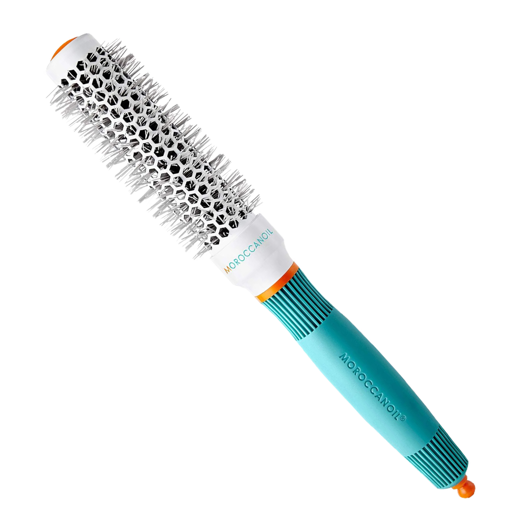 Четка Moroccanoil Ceramic+Ion brush Thermal 25 мм e изработена от висококачествени, йонизирани материали, тя позволява равномерното разпределение на топлината и подобрява времето за изсушаване, като оставя косата гладка и мека, със зашеметяващ блясък.