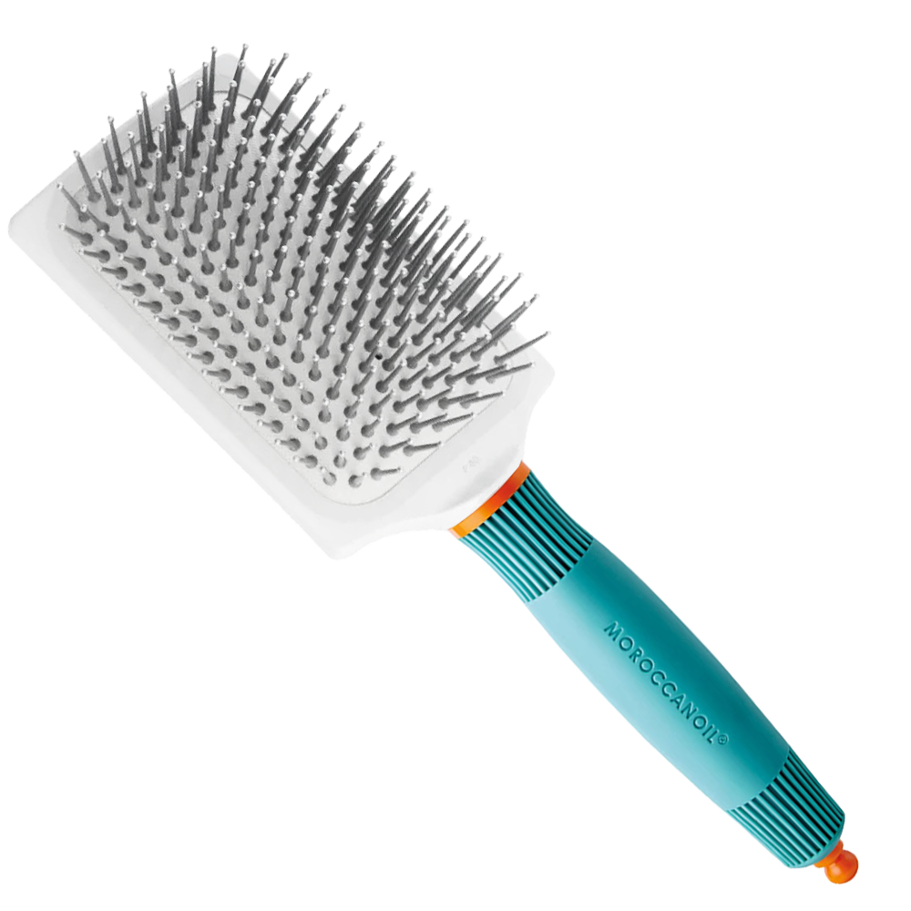 Изработена от висококачествени материали, четката Moroccanoil Ceramic Paddle Brush осигурява перфектно и нежно разресване, които разплитат всеки възел. Не дразни скалпа. Защитава фоликула и разресва нежно, предпазвайки косъма от начупване. Керамичната четка с йонно покритие подпомага равномерното разпределение на топлината при използване на сешоар, като съкращава времето за сушене и оставя косата лъскава и блестяща. Има допълнителна приставка в края на корпуса за да може лесно да разделите косата си на сектори и да оформите прав път.