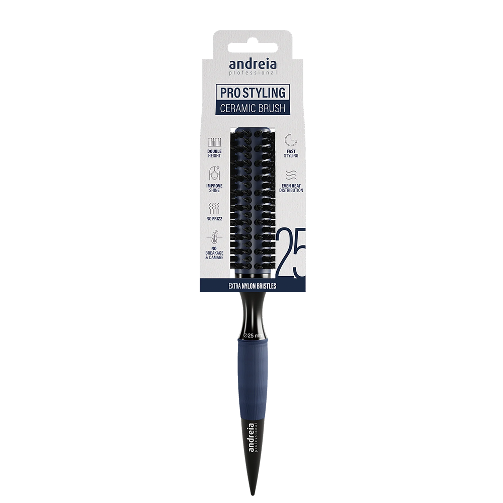Керамичната четка Pro Styling Ceramic Brush с диаметър 25 мм е специално създадена за оформяне на естествени вълни, изправяне и придаване на допълнителен обем при средна до дълга коса.