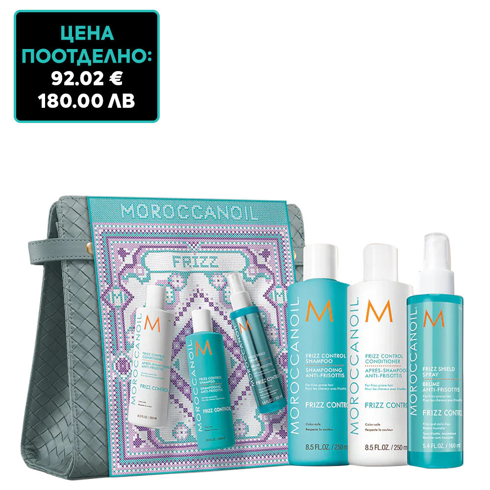 Moroccanoil Frizz Control Shampoo нежно почиства скалпа, намалява фриза и стърчащата коса, и осигурява несравнима копринена мекота и плътност. Намалява статичното електричество и стърчащите кичури до 99%, контролира фриза до 72 часа и го намалява до 73%, като едновременно с това предпазва от до 90% влажност.