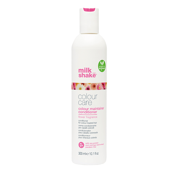 Балсам за боядисана коса с аромат на цветя Milkshake Flower Power Color Maintainer Conditioner е хидратиращ и защитаващ цвета балсам за боядисана коса. Формулиран е с екстракт от моринга и соев протеин с подхранващи и защитни свойства. Ексклузивната съставка Integrity 41® увеличава стабилността и продължителността на цвета. Без парабени.