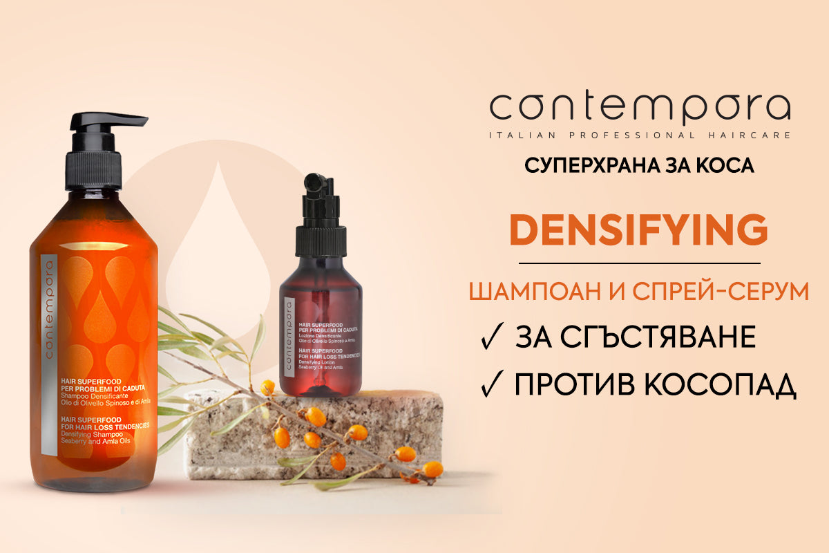 Продуктите на CONTEMPORA са вдъхновени от суперхраните и техните изключителни ползи за здравето. Създадени с масла от суперхрани, те задоволяват всички нужди на косата, правейки я плътна, здрава и изпълнена със забележителен блясък.