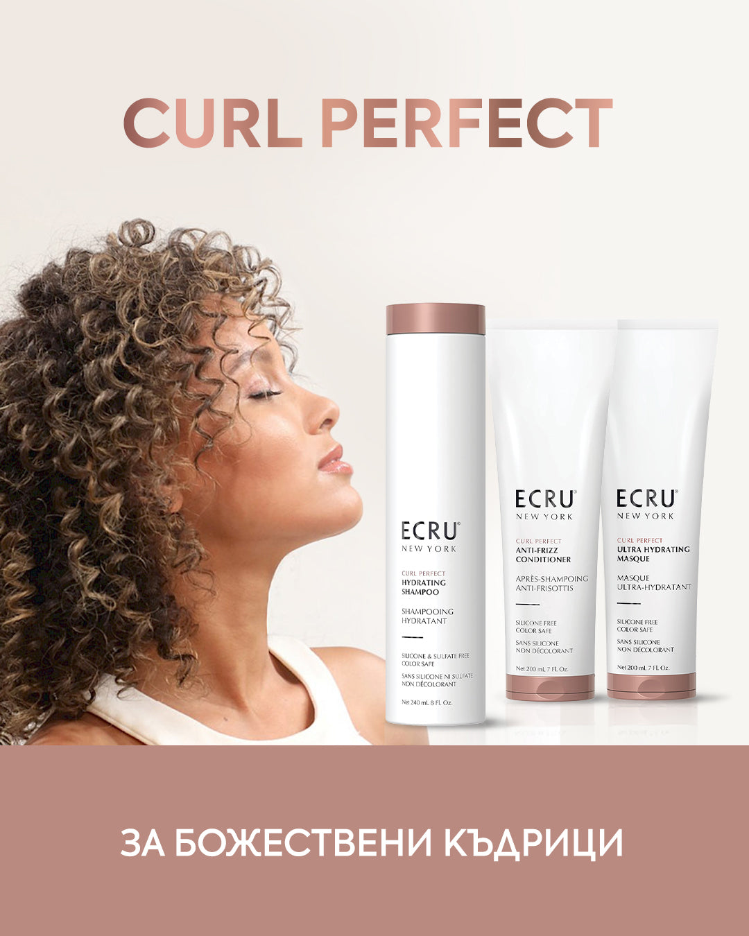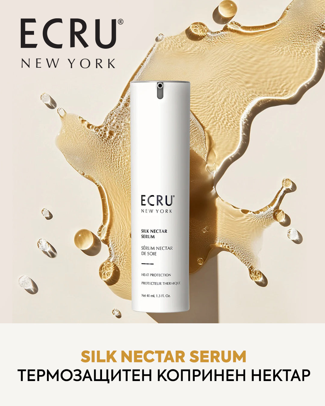 ЕCRU New York е премиум марка, която прави визията от червения килим постижима в домашни условия. Продуктите на Ecru New York са формулирани с изключително ценни съставки и създадени по високи технологии, за да осигуряват клетъчно реновиране на косата. Стволови клетки, хидролизирана коприна, протеини, биотин, алое вера, естествени масла и Йерихонска роза са тайната на блясъка, здравината и еластичността на косата.