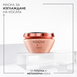 Маската има богата кремообразна консистенция, която опитомява непокорната коса и я прави значително по-гладка и по-лесна за стилизиране.