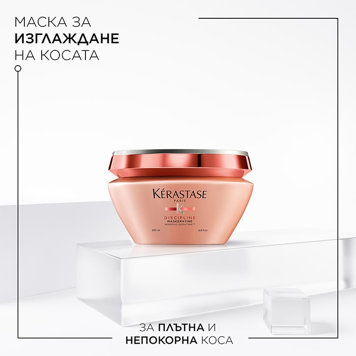 Маската Kérastase Discipline Maskeratine осигурява интензивно и мигновено подхранване на косъма в дълбочина. Улеснява разресването и предотвратява заплитането. Предпазва от наелектризиране и защитава косата от влага за 72 часа. Съкращава времето за изсушаване.