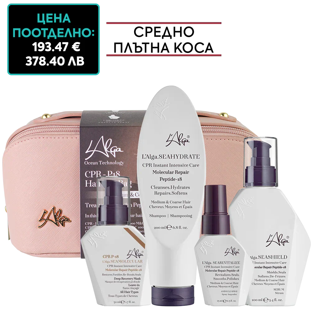 Шампоан за незабавно интензивно молекулярно възстановяване на средно плътна коса L’Alga SEAHYDRATE CPR Instant Intensive Care Medium and Coarse Hair Shampoo 200 мл - почиства косата и скалпа от натрупаните замърсявания. Хидратира и подсилва всеки косъм от корена до върха, като възстановява на молекулярно ниво съществуващите увреждания. Защитава цвета на боядисаната коса от избледняване. Деликатен към кожата на скалпа – не предизвиква раздразнения.