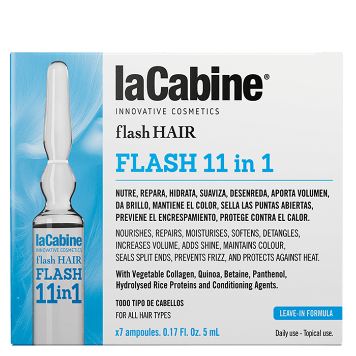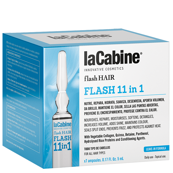 Flash hair 11 in 1 са висококонцентрирани ампули с 11 ползи, от които се нуждае всяка коса. Възстановяват, подхранват и хидратират в дълбочина. Подобряват еластичността и плътността на всеки косъм, предпазвайки го от накъсване. Придават копринена мекота, гладкост и огледален блясък. В резултат косата е по-здрава, жизнена и невероятно красива.