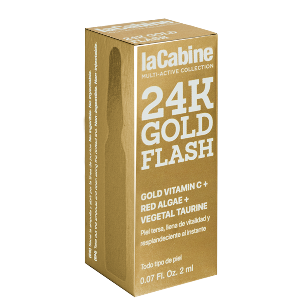 Луксозната ампула с 24K Gold Flash Effect осигурява моментално повдигане и стягане на кожата, като видимо намалява бръчките. Хидратира дълбоко, осезаемо и трайно, придавайки жизненост и свежест. Кожата веднага става сияйна, гладка и без следа от умора.