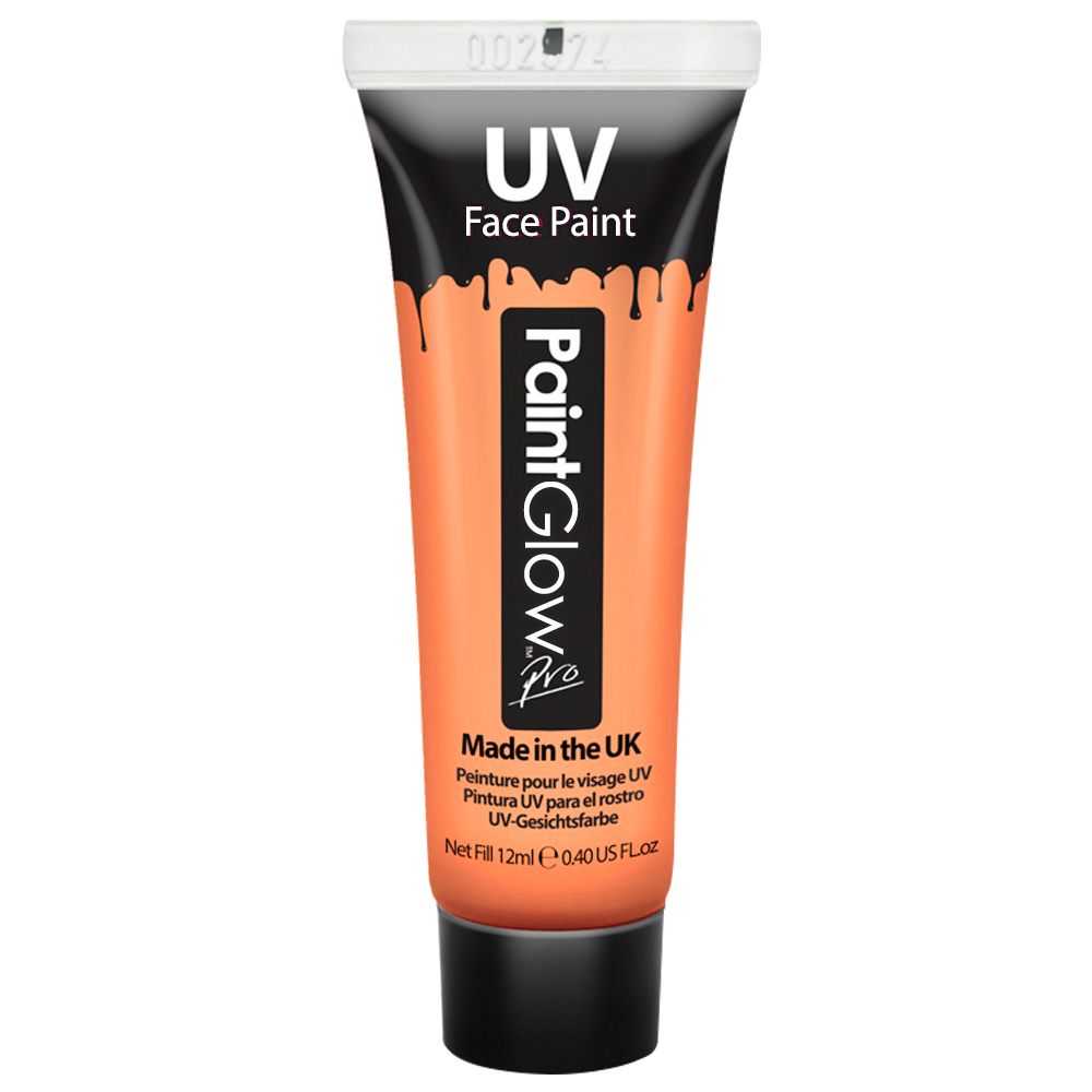 Боята за лице PaintGlow UV Face Paint Orange свети в оранжев цвят, при наличието на неонова светлина. Подходяща е за рисуване на лице и тяло, като е необходимо да се избягва зоната около очите и устните. Идеална е за партита, карнавали, Halloween, клубове, дискотеки. Неоновата боя може да се ползва като допълнение към сценичен грим или просто за настроение. Цветът е искрящ и наситен и с него може да създадете една различна и дръзка парти визия. Има гъста и кремообразна текстура. Нанася се и се премахва бързо и лесно. Предлага се в малка и практична опаковка.