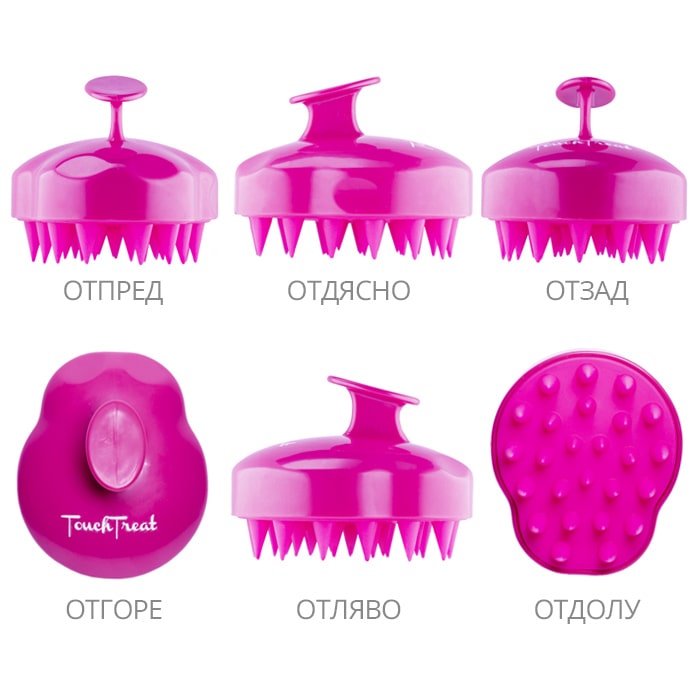 Touch Treat e масажна четка за скалп с мултифункционално действие, вдъхновена от акупунктурата. Използвана под душа, подпомага по-лесното разпенване на шампоана, като същевременно ефективно почиства скалпа. Активира кръвообращението, стимулира растежа на косата, намалява сърбежа и раздразненията.