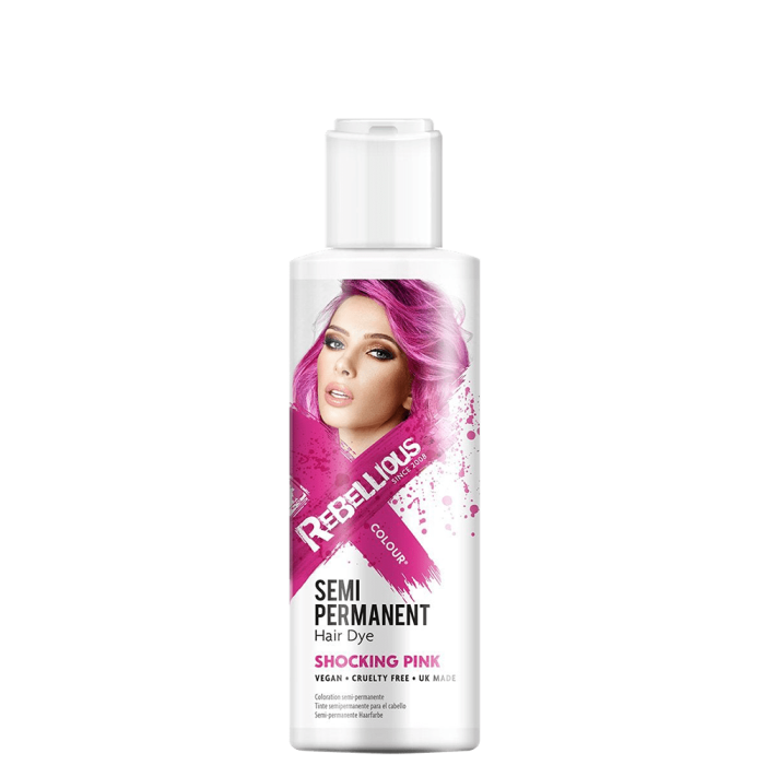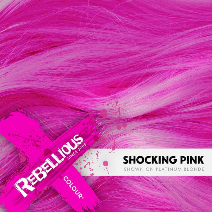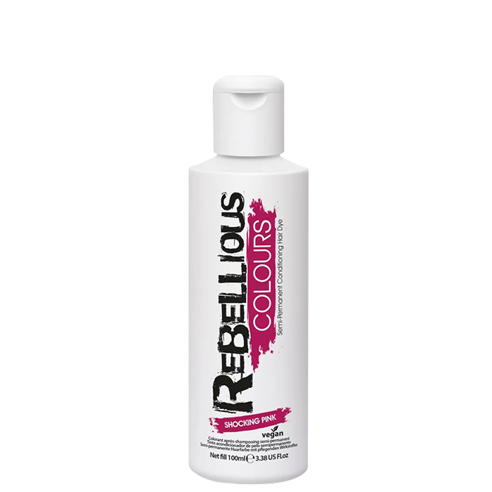 Боята Rebellious Colour Semi-Permanent Hair Dye Shocking Pink придава ярък и наситен розов цвят. Осигурява интензивна грижа по време на боядисването със своята хидратираща формула. Идеална е за постигане на екстравагантни визии с ярки цветове. Може да се използва върху цялата коса или за създаването на цветни кичури. Формулата без амоняк предпазва максимално косата, за да се избегне нарушаването на структурата й. Издържа 2 до 10 измивания. Това варира в зависимост от цвета, типа и текстурата на косата.