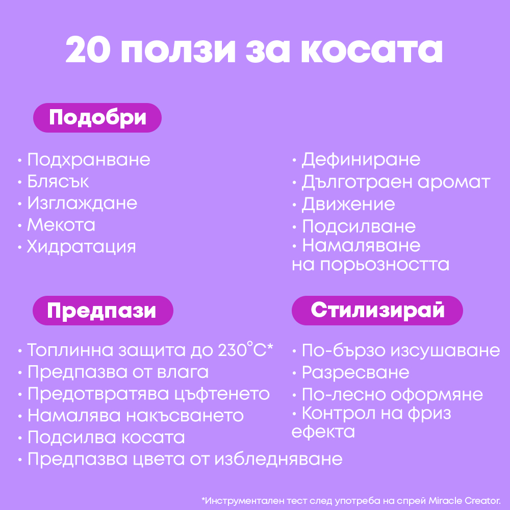 * Инструментален тест след употреба на спрей Miracle Creator.
