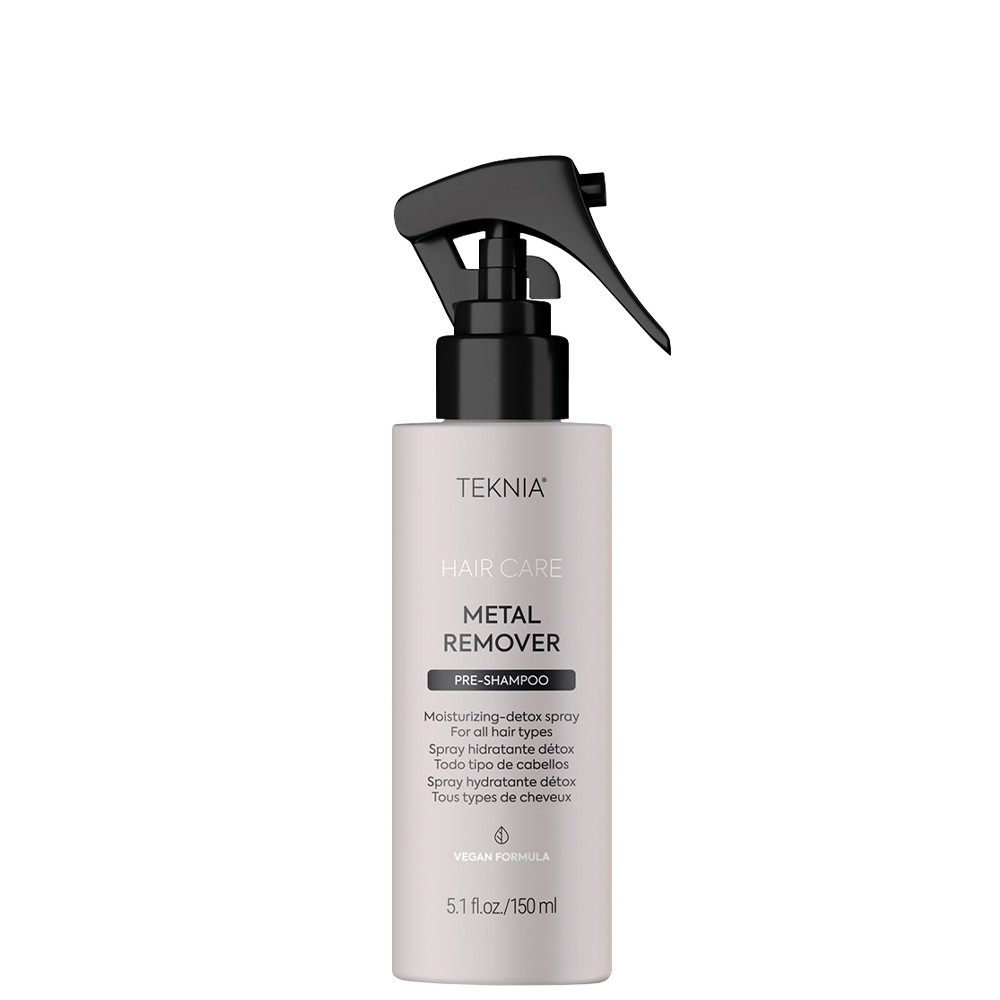 Пре-шампоан за метален детокс и хидратация TEKNIA Metal Remover Pre-Shampoo е спрей преди шампоан с двойно действие, който неутрализира и елиминира натрупванията на метали, минерали и замърсители от косата, съдържащи се в твърдата вода. Детоксикира и почиства в дълбочина. Хидратира и спомага за задържането на хидратацията в косъма. Възвръща естествения блясък, мекотата и здравия вид на косата. Подходящ за всеки тип коса.