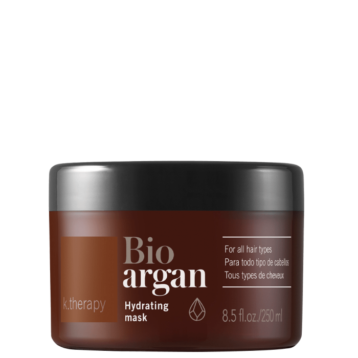 Обогатена със 100% био арганово олио, маската K.therapy Bio Argan Mask е достатъчно интензивна за плътните, сухи коси и същевременно нежна и деликатна към тънките и чувствителни. Хидратира и подхранва в дълбочина и възвръща блясъка, мекотата и еластичността на косата. Предпазва я от агресивното въздействие на околната среда, правейки я по-силна и устойчива на накъсване.