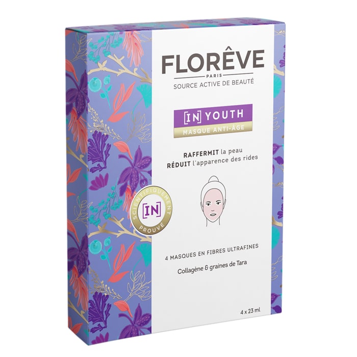 [IN] YOUTH Anti-Ageing Mask е маска от плат, изработена от ултра фини естествени влакна, която стяга кожата и намалява появата на бръчки само за 15 минути. Кожата се усеща стегната и освежена дълго след използване на маската.
