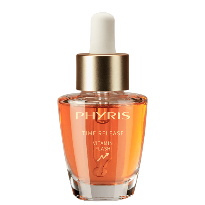 Концентриран серум, който незабавно събужда енергията и живота на кожата PHYRIS Time Release Vitamin Flash Serum с витамин С има интензивно хидратиращо и озаряващо действие върху всеки тип кожа. Необходими са няколко капки от леката и ефирна формула, които незабавно ще освежат и витализират уморената кожа. Активната съставка Q10 подобрява усвояването на кислород в клетките. Витамин С има невероятно стягащо действие – стимулира синтеза на колаген и подобрява еластичността на съединителната тъкан. Подобрява сиянието и текстурата на кожата. Серумът предпазва кожата от свободните радикали в продължение на часове и защитава от преждевременно стареене. Осигурява кадифено мек завършек, без да омазнява. Тенът е сияен и озарен. Серумът оставя кожата жизнена, подхранена и подготвена за следващи етапи от дневната грижа.